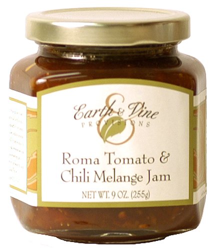 Buy Earth & Vine Roma Tomato & Chili Melange Jam Spread & Dip 10 Oz. California's Roma tomatoes blended with Mexico's premium chilies creates a festival of flavor. Serve over cream cheese. Top grilled polenta slices or steak quesadilla. Brush on grilled vegetables or a chicken sandwich. Earth & Vine Roma Tomato & Chili Melange Jam Spread & Dip 10 Oz. Earth & Vine